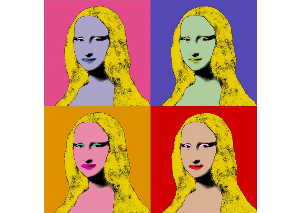 J’ai choisi la très célèbre oeuvre La Joconde. Le but était de la transformer à la façon de l’artiste Andy Warhol, connu pour ces oeuvres de pop art. Pour concevoir cette nouvelle œuvre, j’ai utilisé Photoshop.