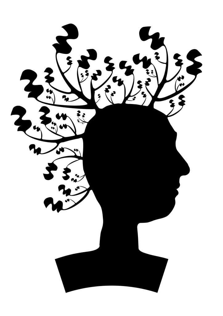 Durant un cours de graphisme, il a fallu réaliser une image reliant le profil de notre visage avec des ramifications fines et complexes issues d’une forme de base dupliquée et fusionnée. En commençant par créer une feuille avec une tige puis en la dupliquant plusieurs fois, en modifiant sa taille, on arrivait à un ensemble de branche de feuilles. Il fallait ensuite les faire joindre au visage qu’on avait détouré avec l’outil plume dans Photoshop. Au final, on obtenait notre visage de profil avec des branches qui partaient de notre tête.